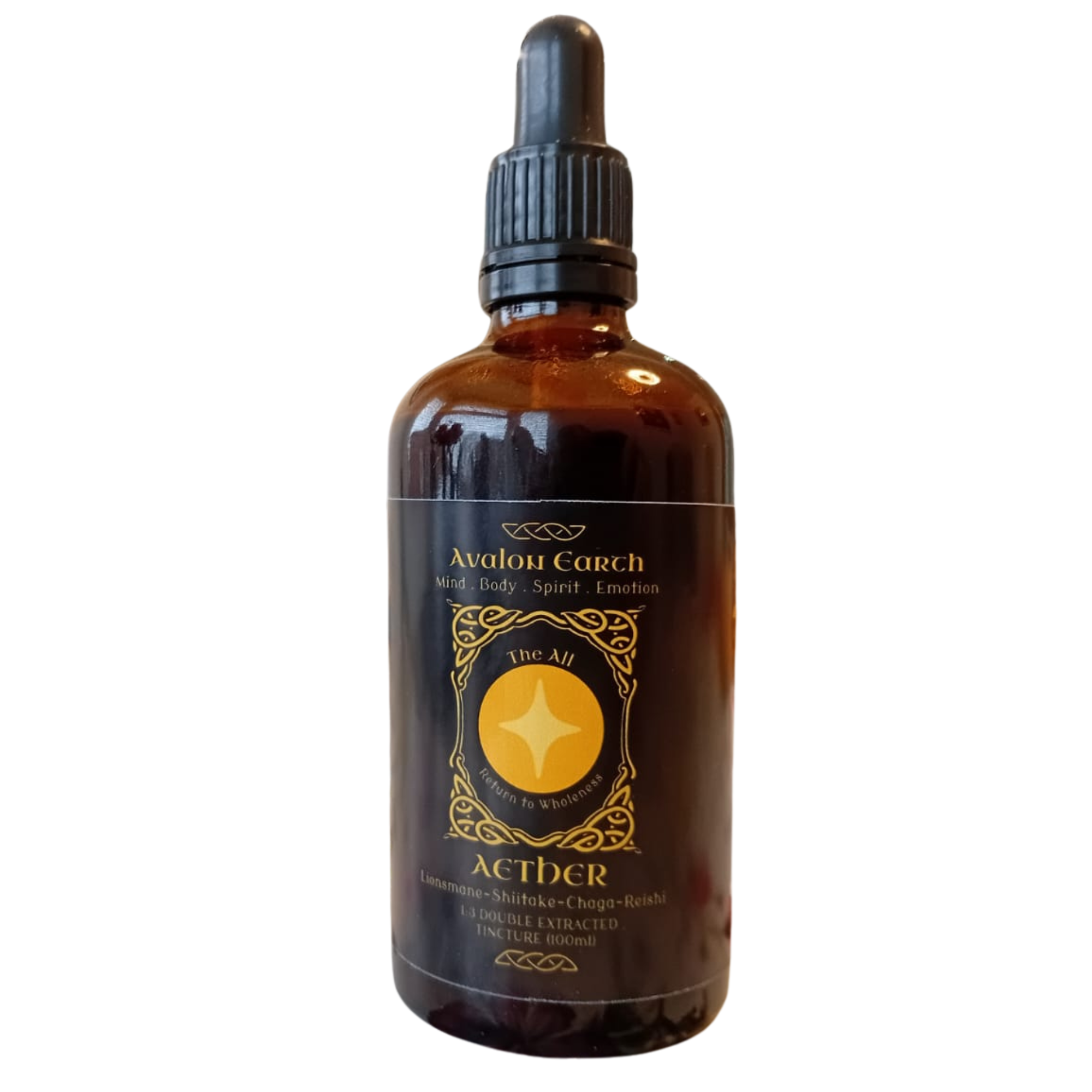 Aether is a whole-system mushroom tincture bringing together Lion’s Mane, Chaga, Reishi, and Shiitake in one integrated formulation.