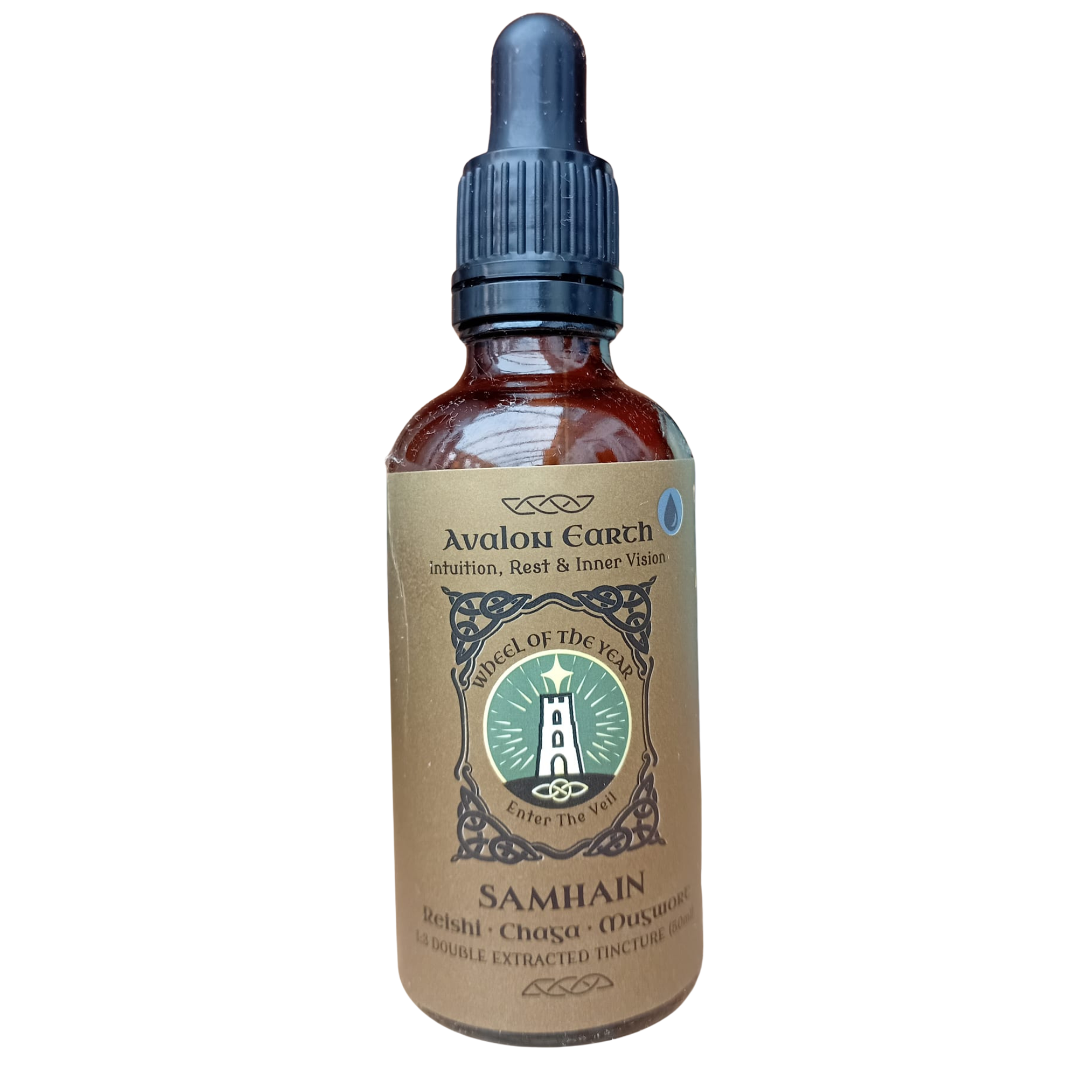 Crafted in England: each tincture is carefully double-extracted and bottled in Glastonbury — the heart of Avalon.